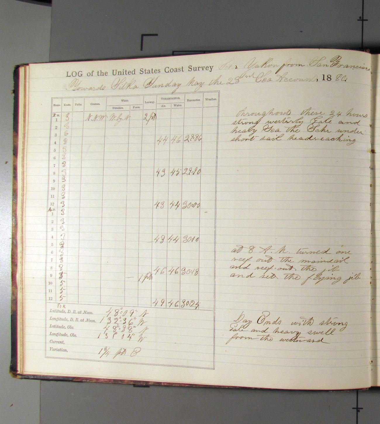 Latter part, wind fresh NWbyW. Weather clear with passing clouds.