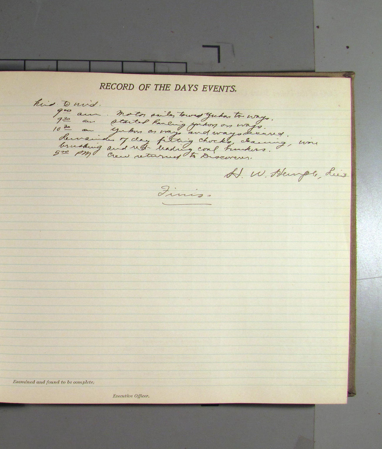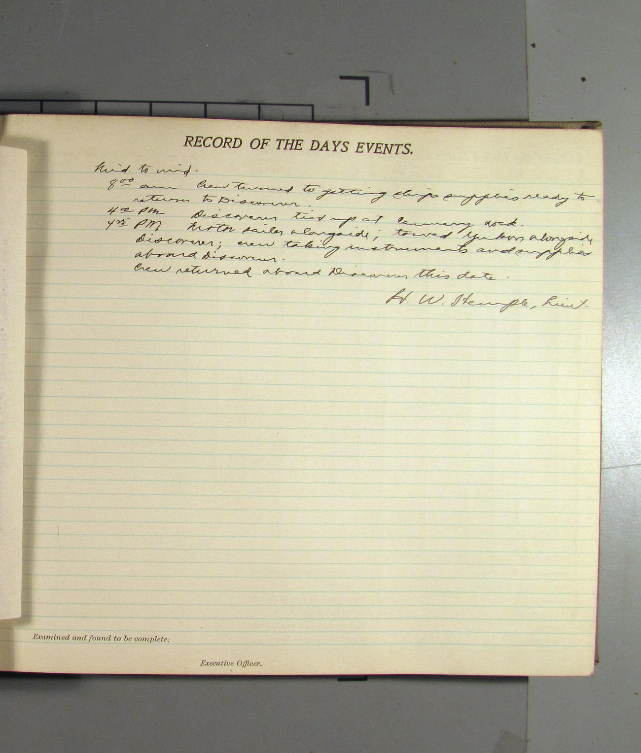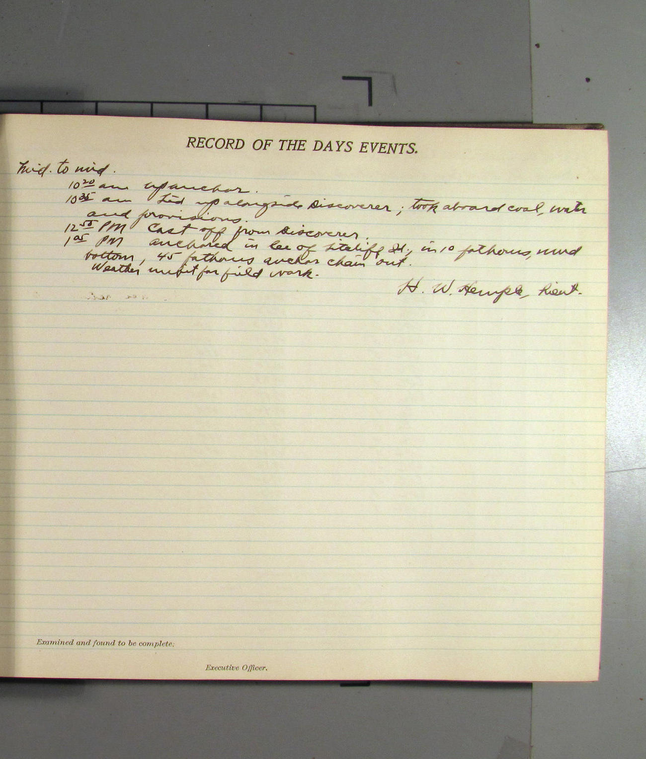 10.35am: Tied up alongside ‘Discoverer’; took aboard coal, water and provisions.