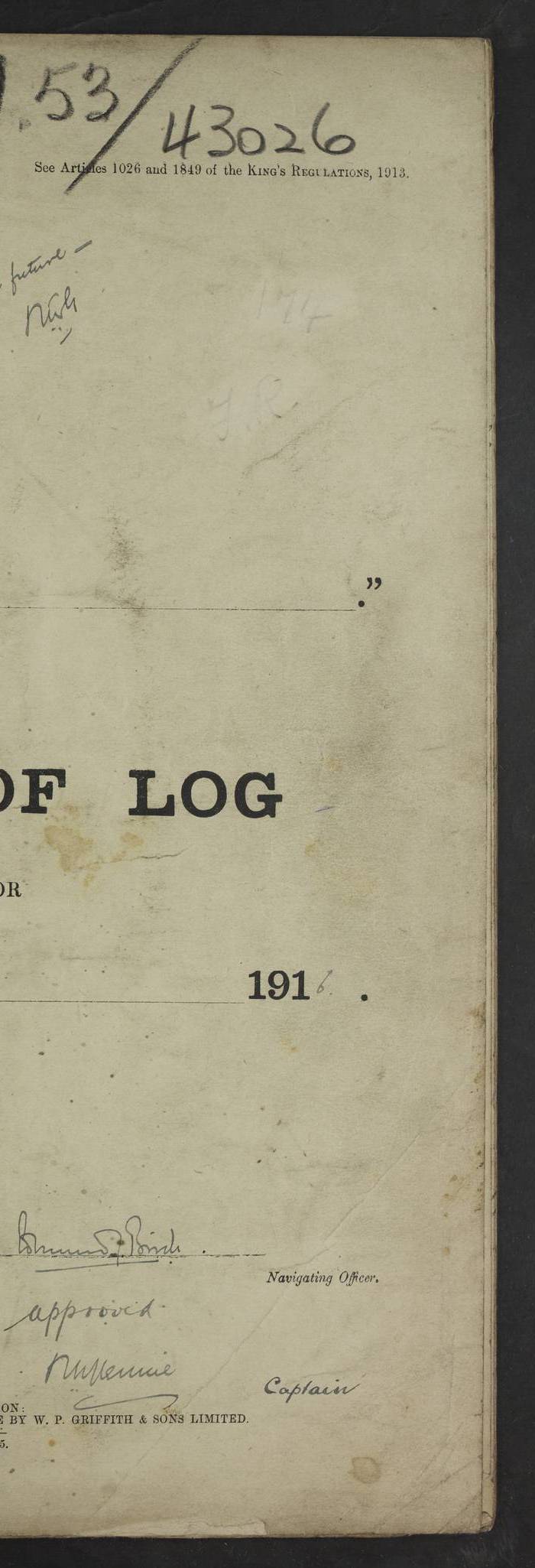 Notes: 1. Latitude/longitude, including for days in port, show representative decimal positions for each day, as calculated by the Old Weather project's analysis program. As such, they differ by varying amounts from the positions recorded, usually at noon, in the log pages. In addition, some latitudes/longitudes have been amended in edited logs for errors in the logs, for errors in identifying locations by the analysis program, or simply for greater accuracy. In all cases, refer to the log-page scans for the positions as originally recorded. Not all log pages contain this information and the ships' positions have therefore often been estimated. 2. Full account of any day is available by clicking on the link above that day. Groups of links refer to log book covers and introductory information; some may be blank. |
