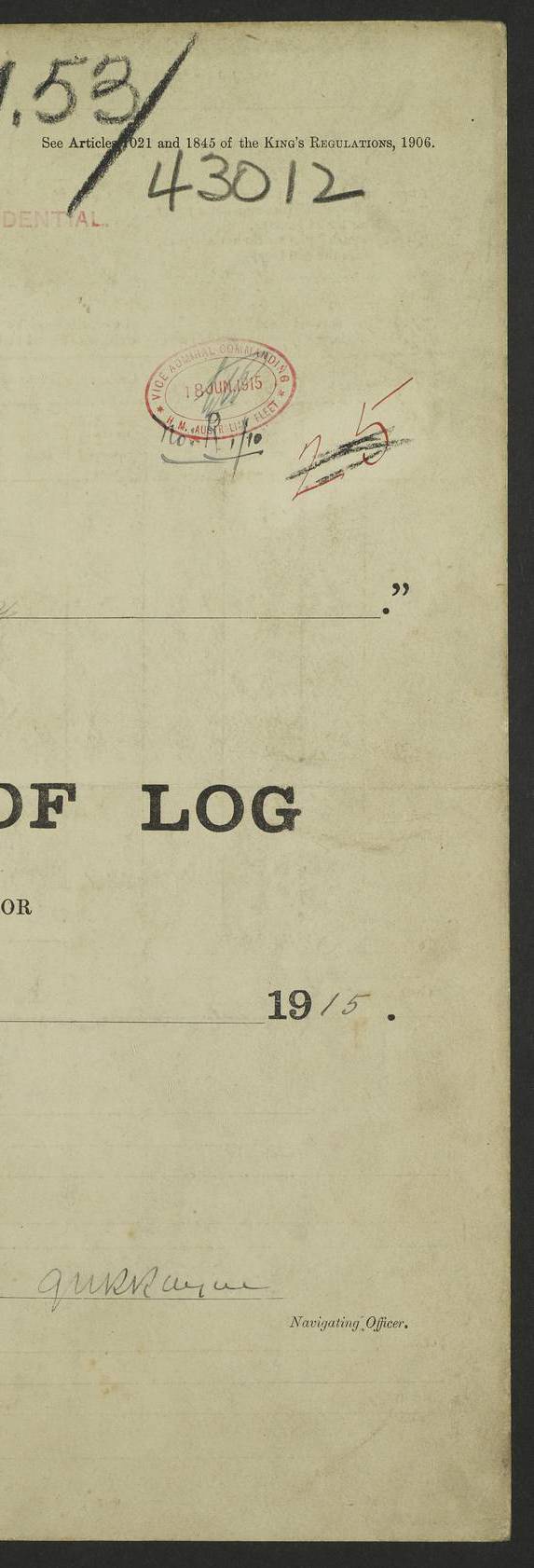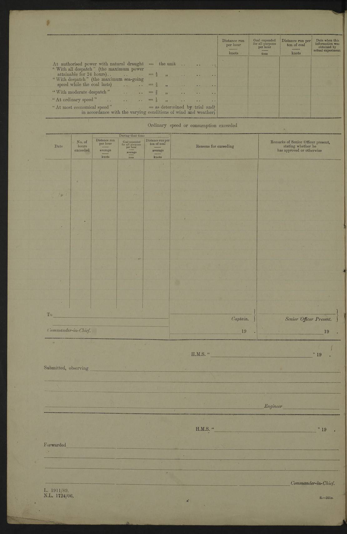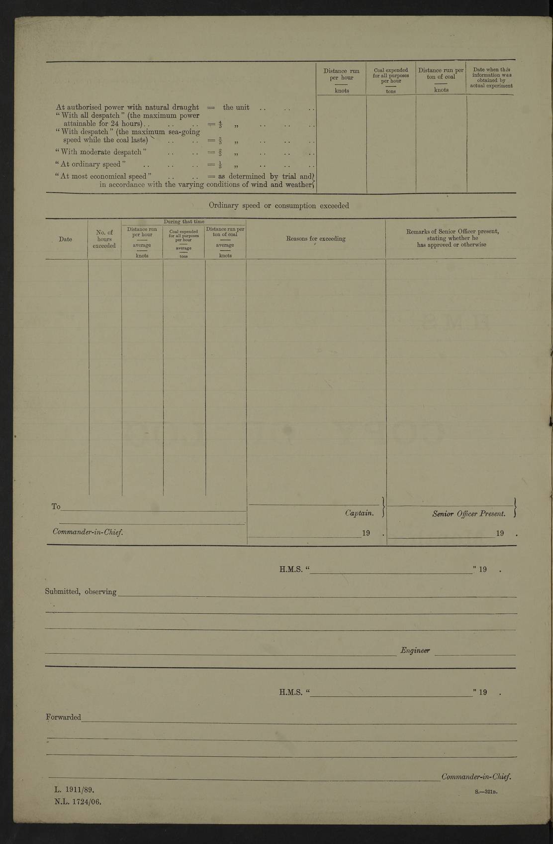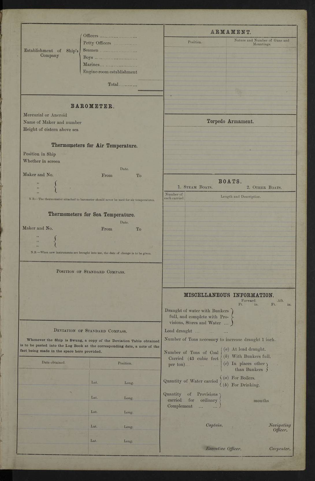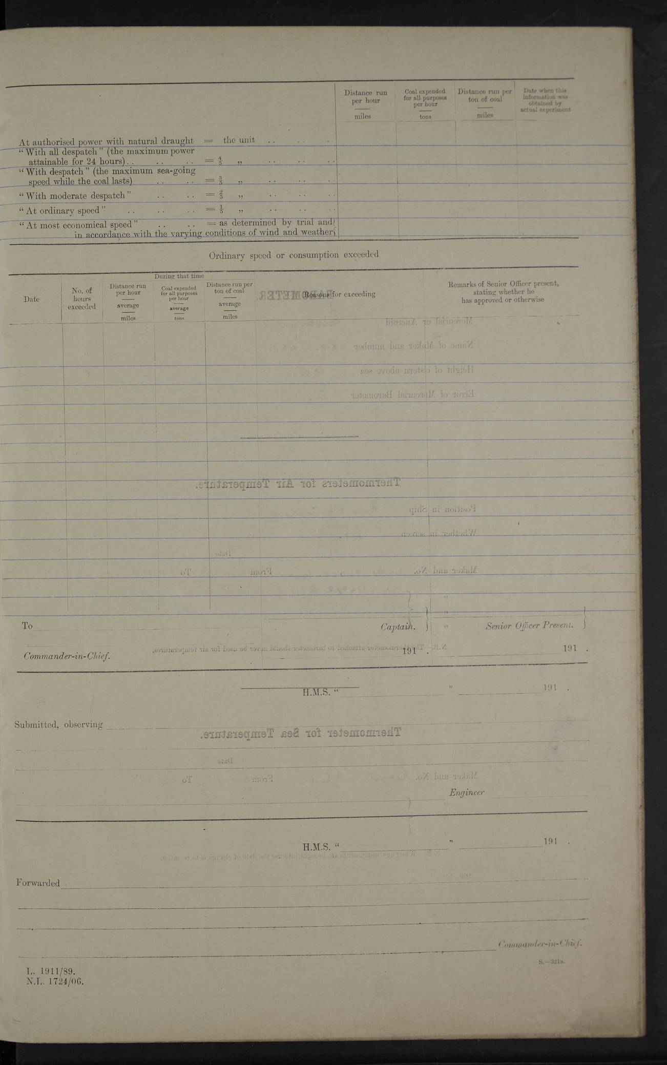 22 June 1915 At sea, Gibraltar to Lemnos Lat 36.1, Long -1.3 4.15am: Sighted land on starboard bow. 10.20am: Stopped port engine for repairs. 11.20am: proceeded with port engine. pm: a/c due to change in deviation. 10.00pm: Cape Tenez Light abeam, 18 miles. 4f73cd61a2fc8ea9030015f6: (https://s3.amazonaws.com:443/oldweather/ADM53-43015/0012_1.jpg) 23 June 1915 At sea, Gibraltar to Lemnos Lat 37.5, Long 4.8 Number on sick list: 4 5.00am: Secured from night defence stations. Placed anti-submarine guns. pm: Life saving appliances served out to men stationed in ? ?at abandon ship. 4f73cd61a2fc8ea9030015f7: (https://s3.amazonaws.com:443/oldweather/ADM53-43015/0013_0.jpg) 24 June 1915 At sea, Gibraltar to Lemnos Lat 37.4, Long 10.8 Position in log clearly bears no resemblance to the location of the ship. Position above is approximate and is based sighting of Zembra Island at 11.55am. 5.00am: Dispersed from night defence stations. Manned anti-submarine guns. am: Sighted two French torpedo boats. am: Torpedo boats passed to ~ No 362, 363. am: Sighted land on starboard beam. 11.55am: Zembra Island abeam, 25 miles. 2.00pm: Sighted Pantellaria S34ºE. 4.45pm: Pantellaria Light House abeam 12 miles. 4f73cd61a2fc8ea9030015f8: (https://s3.amazonaws.com:443/oldweather/ADM53-43015/0013_1.jpg) 25 June 1915 At sea, Gibraltar to Lemnos Lat 35.5, Long 16.7 2.10am: Gozo Light abeam 17 miles. 5.00am: Dispersed from night defence stations. Manned anti-submarine guns. 4f73cd61a2fc8ea9030015f9: (https://s3.amazonaws.com:443/oldweather/ADM53-43015/0014_0.jpg) 26 June 1915 At sea, Gibraltar to Lemnos Lat 35.5, Long 22.6 Number on sick list: 5 5.00am: Dispersed from night defence stations. Manned anti-submarine guns. am: Aired night clothing. am: marines at maxim practice on quarter deck. 2.00pm: Observed land on either bow. 3.00pm: Sighted French patrol destroyer. 4.15pm: Sighted French patrol destroyer. 9.40pm: Milo Peak N63ºW. 10.26pm: Polino Light abeam to port 5.5 miles. 4f73cd62a2fc8ea9030015fa: (https://s3.amazonaws.com:443/oldweather/ADM53-43015/0014_1.jpg) 27 June 1915 At sea and at Lemnos Lat 39.1, Long 24.4 From 0.50 to 3.05am sighting of multiple light houses. 3.50am: a/c to N39ºW and commenced to zig-zag. 5.00am: Dispersed from night defence stations and placed anti-submarine guns and look-outs. am: Lost overboard by accident Hazlewood fender, pat. 311, one in number. 10.30am: Held Divine Service onboard. pm: Met and signalled HMS Minerva on patrol duty. pm: Courses and speeds as requisite while waiting orders to approach Mudros. 3.00pm: Proceeded. 5.16pm: Increased to 90 revs, commenced to zig-zag. Course as requisite for Mudros. 7.00pm: Entered Mudros Bay. 7.47pm: Stopped. Let go port anchor in ‘M3’. 8.30pm: Darkened ship. pm: Manned one 6” and one 12 pdr. 4f73cd62a2fc8ea9030015fb: (https://s3.amazonaws.com:443/oldweather/ADM53-43015/0015_0.jpg) 28 June 1915 Mudros Bay, Lemnos Lat 39.89, Long 25.24 5,00am: HMS Vengeance entered harbour. HMS Vengeance was a pre-dreadnought of the Canopus class, launched in 1899 at Vickers, Barrow, and sold for scrapping in 1921. Details at http://en.wikipedia.org/wiki/HMS_Vengeance_(1899) . am/pm/: hands preparing for coaling and about ship’s work. pm: Collier Wabana secured alongside. 4f73cd62a2fc8ea9030015fc: (https://s3.amazonaws.com:443/oldweather/ADM53-43015/0015_1.jpg) 29 June 1915 Mudros Bay, Lemnos Lat 39.89, Long 25.24 5.15am: Commenced coaling. 2.00pm: Finished coaling. Collier left. 4f73cd62a2fc8ea9030015fd: (https://s3.amazonaws.com:443/oldweather/ADM53-43015/0016_0.jpg) 30 June 1915 Mudros Bay, Lemnos Lat 39.89, Long 25.24 am: Parties away sanding, and with fire engines onshore. am: Boats away disembarking troops. am: French Flagship Patrie sailed. The Patrie was a French pre-dreadnought, launched at La Seyne shipyard in 1903, and stricken in 1921. Details at http://en.wikipedia.org/wiki/French_battleship_Patrie . 6.30pm: Hands to bathe. 4f73cd63a2fc8ea9030015fe: (https://s3.amazonaws.com:443/oldweather/ADM53-43015/0016_1.jpg) 4f73cd63a2fc8ea9030015ff: (https://s3.amazonaws.com:443/oldweather/ADM53-43015/0017_0.jpg) 4f73cd63a2fc8ea903001600: (https://s3.amazonaws.com:443/oldweather/ADM53-43015/0017_1.jpg) 4f73cd63a2fc8ea903001601: (https://s3.amazonaws.com:443/oldweather/ADM53-43015/0018_0.jpg) 4f73cd64a2fc8ea903001602: (https://s3.amazonaws.com:443/oldweather/ADM53-43015/0018_1.jpg) LOGS FOR JULY 1915 From July to October 1915, HMS Glory spent her time at Port Mudros. Certain activities typically took place daily and are not generally noted in the pages below. These activities include: Lighting fires in the picket boat around 4am and drawing the fires in the late evening; Divisions at around 9–9.30am and Evening Quarters at 4pm; Darken ship at around 8.30pm; Daily ‘cleaning ship’, with variations thereof; SBC (for ‘Signal Books Correct’) at the watch changes. 4f73cd64a2fc8ea903001603: (https://s3.amazonaws.com:443/oldweather/ADM53-43016/0000_0.jpg) 4f73cd64a2fc8ea903001604: (https://s3.amazonaws.com:443/oldweather/ADM53-43016/0000_1.jpg) 4f73cd65a2fc8ea903001605: (https://s3.amazonaws.com:443/oldweather/ADM53-43016/0001_0.jpg) 4f73cd65a2fc8ea903001606: (https://s3.amazonaws.com:443/oldweather/ADM53-43016/0001_1.jpg) 1 July 1915 Port Mudros Lat 39.89, Long 25.24 6.30am: Landed working parties preparing boom defence ships. am: Discharged Acting Commander Rayne to Hector. Hector was a kite balloon ship. No further details readily available. 5.00pm: Tug T.10 made fast astern. 7.15pm: HMS Venerable went out. 7.30pm: HMS Chatham went out. HMS Chatham was a ‘Town’ cruiser and lead ship of her class. She was launched in 1911 at Chatham Dockyard and sold in 1926. Details at http://en.wikipedia.org/wiki/HMS_Chatham_(1911) . 4f73cd65a2fc8ea903001607: (https://s3.amazonaws.com:443/oldweather/ADM53-43016/0002_0.jpg) 2 July 1915 Port Mudros Lat 39.89, Long 25.24 5.35am: Landed working parties preparing boom defence ships. am/pm: Boom defence par
