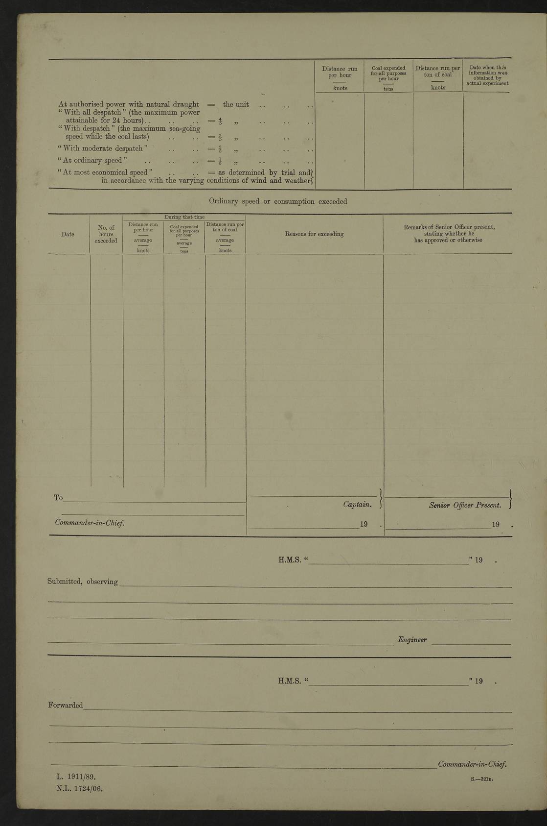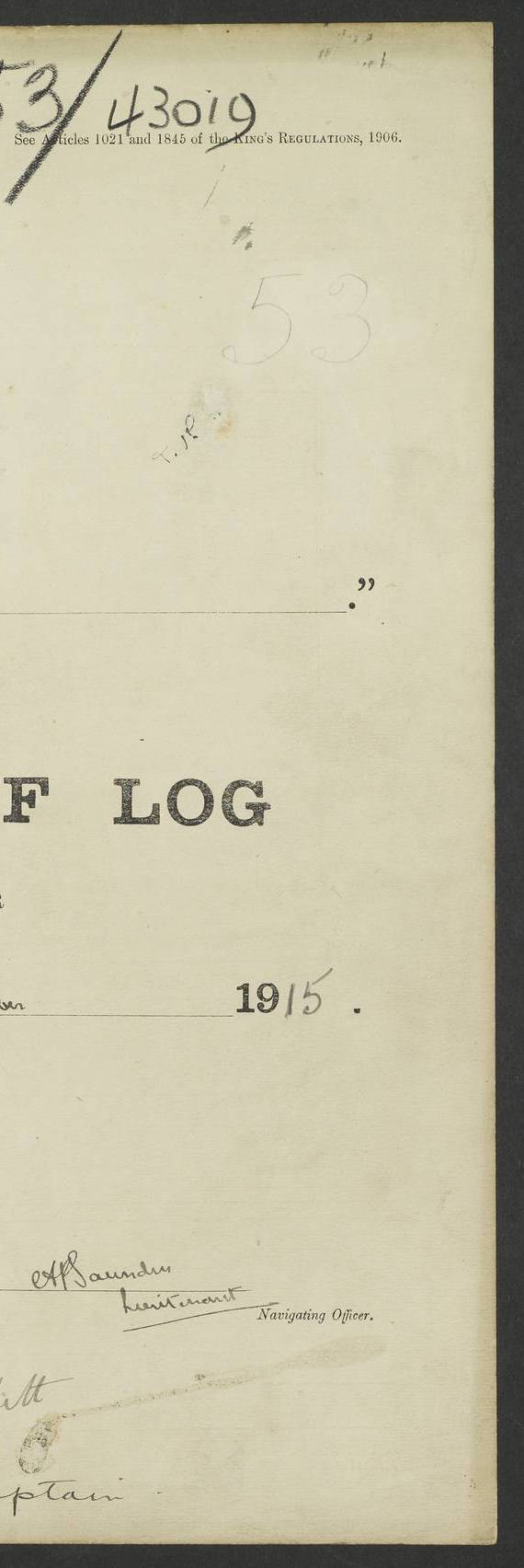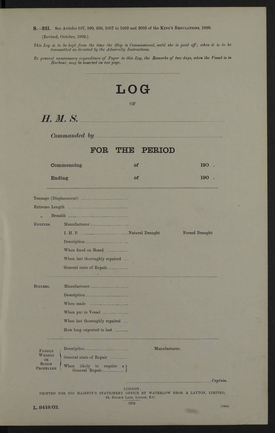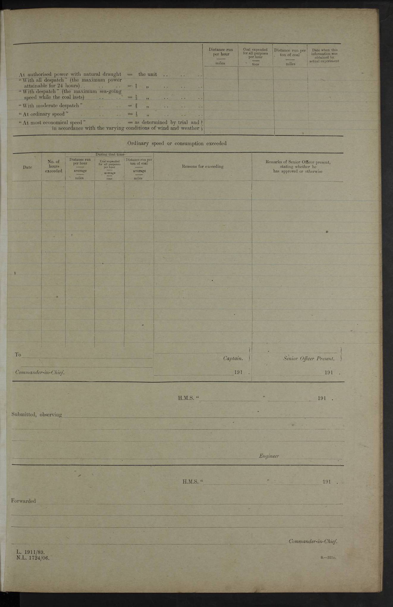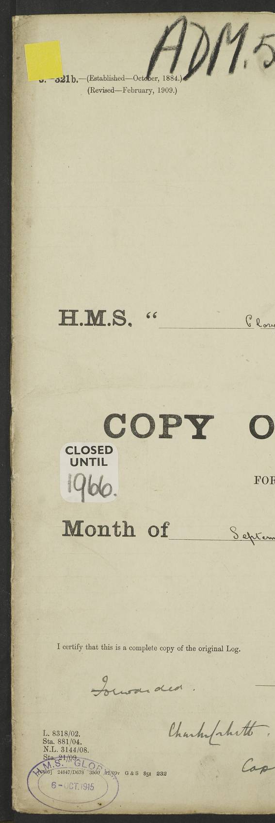 Report of deaths of Seamen HMS Glory Following received from 3rd Echelon(?) Alexandria: Date of death 16 Aug 15 Name Frank Murrell Sex Male Rating AB Nationality British Last place of abode 35 St Leonard Road Horsham Sussex Cause of death Dysentery on active service. The log shows the name as ‘Murrel’. The spelling given here is as at xDKCas1915-08Aug.htm . AB Murrell’s service number was 203155. Date of death 7 Sept 15 Name Richard Godden Sex Male Rating AB Nationality British Last place of abode 13 High Street Southwell Portland Dorset Cause of death Dysentery on active service AB Godden’s service number was 144561. 6.20am: HMS Latona arrived. 8.15am: Buda Point party landed. 8.45am: Sent working party to K38 motor lighter. 9.05am: Submarine H 4 sailed. 10.30am: 10 Ratings rejoined ship from I. Working party from K38 lighter returned. Marines at infantry drill. 4.50pm: Buda Point party returned. 4f73cd7da2fc8ea903001669: (https://s3.amazonaws.com:443/oldweather/ADM53-43018/0013_0.jpg) 24 September 1915 Port Mudros Lat 39.89, Long 25.24 6.45am: Hoisted out Aragon's steam pinnace. 8.30am: Recreation ground party landed. 1.30pm: Tug Kerarnos left ship. Sent steam pinnace and crew to Aragon. 3.45pm: H Submarine arrived. 3.40pm: Submarine E20 arrived. 4.05pm: French submarine arrived. 4.30pm: Discharged 1 Marine to Hospital Ship Gloucester Castle. 6.30pm: 9 ratings discharged to Europa. 6.50pm: French Battleship sailed. 4f73cd7da2fc8ea90300166a: (https://s3.amazonaws.com:443/oldweather/ADM53-43018/0013_1.jpg) 25 September 1915 Port Mudros Lat 39.89, Long 25.24 Number on sick list: 10 6.50am: HMS Endymion arrived. 10.40am: HMS Sentinel and TB29 arrived. Tug Kerarnos left ship for good. 1.20pm: HMS Skirmisher and TB 18 arrived. HMS Sentinel and Skirmisher were sister ships and the only members of their class of Scout cruisers. Both vessels were launched at Vickers, Barrow, in 1905. Sentinel was sold in 1922 and Skirmisher was sold in 1920. Details at http://en.wikipedia.org/wiki/HMS_Sentinel_(1904) and http://en.wikipedia.org/wiki/HMS_Skirmisher_(1905) . 1.30pm: Sent 4 gun wheels to Lancashire landing. 5.00pm: H Submarine came alongside for her gun. 5.10pm: HMS Chatham sailed. 5.15pm: HMS Honeysuckle arrived. 6.20pm: HMS Cornwall sailed. 6.30pm: HMS Raglan sailed. 6.50pm: Picket boat left for patrol. 4f73cd7da2fc8ea90300166b: (https://s3.amazonaws.com:443/oldweather/ADM53-43018/0014_0.jpg) 26 September 1915 Port Mudros Lat 39.89, Long 25.24 Number on sick list: 13 6.30am: French cruiser arrived. Picket boat returned from patrol. 7.15am: HMS Cornwallis sailed. 9.30am: Hands mustered by the Ledger. Sent Roman Catholics to Albion for Divine Service. 11.30am: Submarine sailed. 3.20pm: HMS Bacchante arrived. 5.30pm: Motor lighters K40 and K42 left ship. 7.15pm: Submarine H1 arrived. 8.25pm: HMS Euryalus sailed. 9.00pm: 1 Rating rejoined ship from C beach. 4f73cd7ea2fc8ea90300166c: (https://s3.amazonaws.com:443/oldweather/ADM53-43018/0014_1.jpg) 27 September 1915 Port Mudros Lat 39.89, Long 25.24 6.20am: HMS Chatham arrived. 7.20am: 1 Rating rejoined ship from Hospital. 1.40pm: HMS Exmouth arrived. HMS Exmouth was a pre-dreadnought of the Duncan class, launched in 1901 at Cammell Laird, Birkenhead, and sold in 1920. Details at http://en.wikipedia.org/wiki/HMS_Exmouth_(1901) . 5.55pm: HMS Endymion sailed. Monitor 15 arrived. 6.10pm: HMS Sentinel sailed. 6.35pm: HMS Foresight arrived. HMS Foresight was a scout cruiser of the Forward class, launched in 1904 at Fairfield, Govan, and sold in 1920. Details at http://en.wikipedia.org/wiki/HMS_Foresight_(1904) . 7.10pm: HMS Prince George sailed. 4f73cd7ea2fc8ea90300166d: (https://s3.amazonaws.com:443/oldweather/ADM53-43018/0015_0.jpg) 28 September 1915 Port Mudros Lat 39.89, Long 25.24 6.15am: Ben-My-Chree arrived. 9.00am: One Signal Rating rejoined ship from W Beach. 9.53am: Vice-Admiral de Robeck came on board to inspect ship. 12.30pm: Vice Admiral left ship. pm: Port Watch prepared for coaling and getting in sheet anchor for trawler. 2.30pm: 1 PO Rating rejoined from Exmouth. 3.30 Surgeon Ryan rejoined from Soudan. 6.50pm: One Rating rejoined from Anzac. 6.20pm: HMS Jonquil arrived. 8.50pm: One rating rejoined from W Beach and one Boy joined from Europa. 4f73cd7ea2fc8ea90300166e: (https://s3.amazonaws.com:443/oldweather/ADM53-43018/0015_1.jpg) 29 September 1915 Port Mudros Lat 39.89, Long 25.24 6.10am: HMS Venerable arrived. 6.55am: Chatham sailed. 7.10am: Exmouth sailed. Submarine sailed. 8.00am: Working party 1 PO, 11 Hands under Gunner to Swansea Vale. 9.10am: Submarined H4 arrived. 9.15am: 3 Ratings rejoined from Suvla Bay. 9.45am: Surgeon Haldane discharged to Lord Nelson. 11.00am: Collier Wabama secured alongside. 1.00pm: Commenced coaling. 1.15pm: Discharged one rating to Adamant. 3.20pm: Discharged 28 Trawler Ratings to Europa for Suvla Bay. 3.30pm: Lieutenant Saunders rejoined from Special Service. 4.00pm: 1 Rating rejoined from Redbreast. Redbreast was a fleet messenger of 1313 grt, built in 1908. She was sunk on 15 July, 1917, by UC.38 in the Mediterranean. Sourced from F.J. Dittmar & J.J. Colledge (1972) – British warships 1914–1919, Ian Allan. 4.15pm: Finished coaling received 350 tons. 4.45pm: Collier Wabama cast off. Two PO Ratings joined from Europa. 6.20pm: HMS Venerable sailed. 7.00pm: Picket Boat went on Patrol. 4f73cd7ea2fc8ea90300166f: (https://s3.amazonaws.com:443/oldweather/ADM53-43018/0016_0.jpg) 30 September 1915 Port Mudros Lat 39.89, Long 25.24 6.00am: Hands cleaning ship, embarking stores and ammunition. 6.15am: Picket boat returned from patrol. 6.30am: Swanley made fast alongside. 7.00am: Swansea Vale made fast. 7.30am: TDB Pincher sailed. 8.10am: HMS Rattlesnake sailed. 8.30am: Sent divers and diving party to Aragon. 8.40am: Landed Working Party at Buda Point, hands embarking provisions. 9.55am: Swansea Vale cast off. am: 3rd steam pinnace turned over to HMS Prince Edward. Mr Skuse, Gunner RN discharged to HMS J