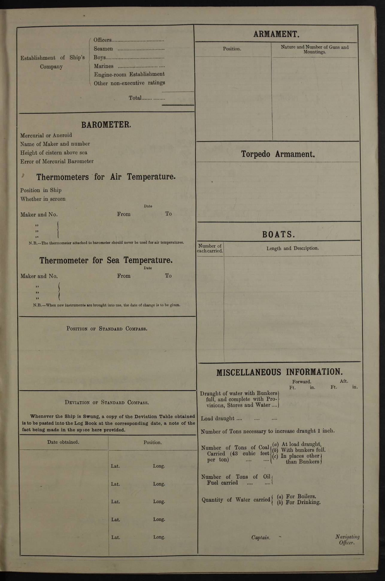 4ef4f6cbe53e0a0c910022bb: (https://s3.amazonaws.com:443/oldweather/ADM53-45455/0005_0.jpg) 4ef4f6cbe53e0a0c910022bc: (https://s3.amazonaws.com:443/oldweather/ADM53-45455/0005_1.jpg) [Armaments etc page, not completed]