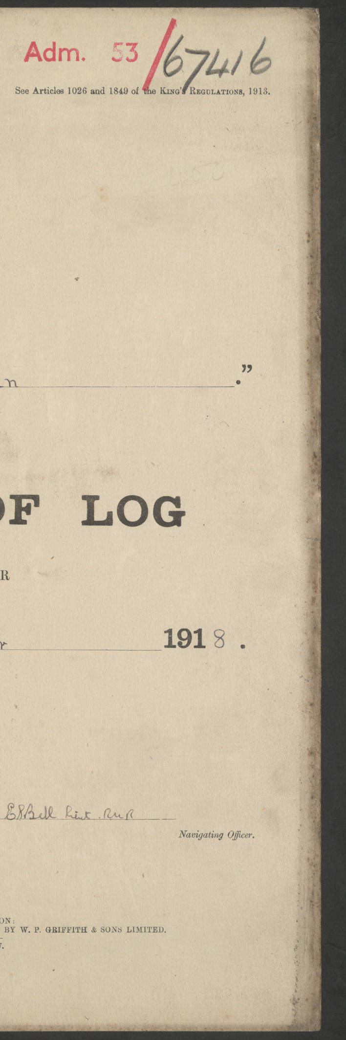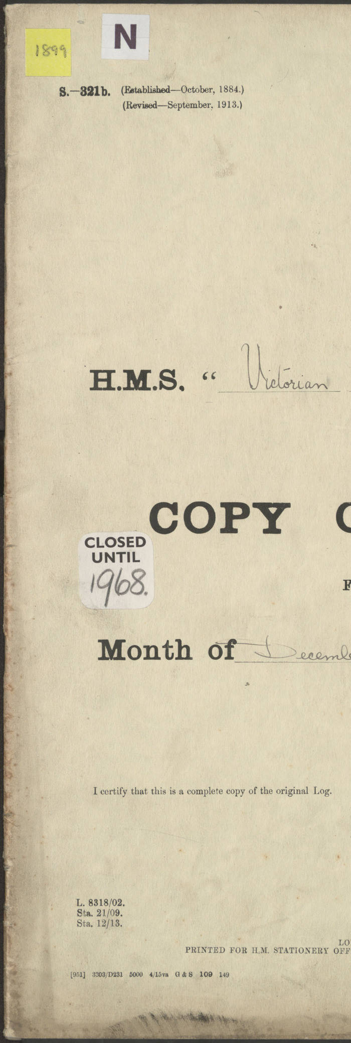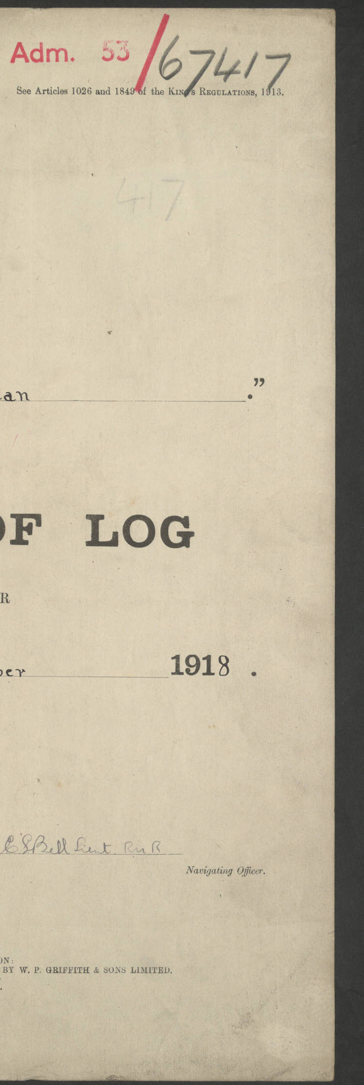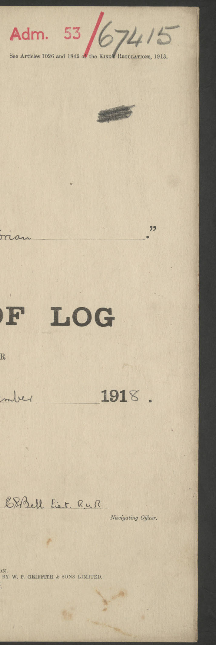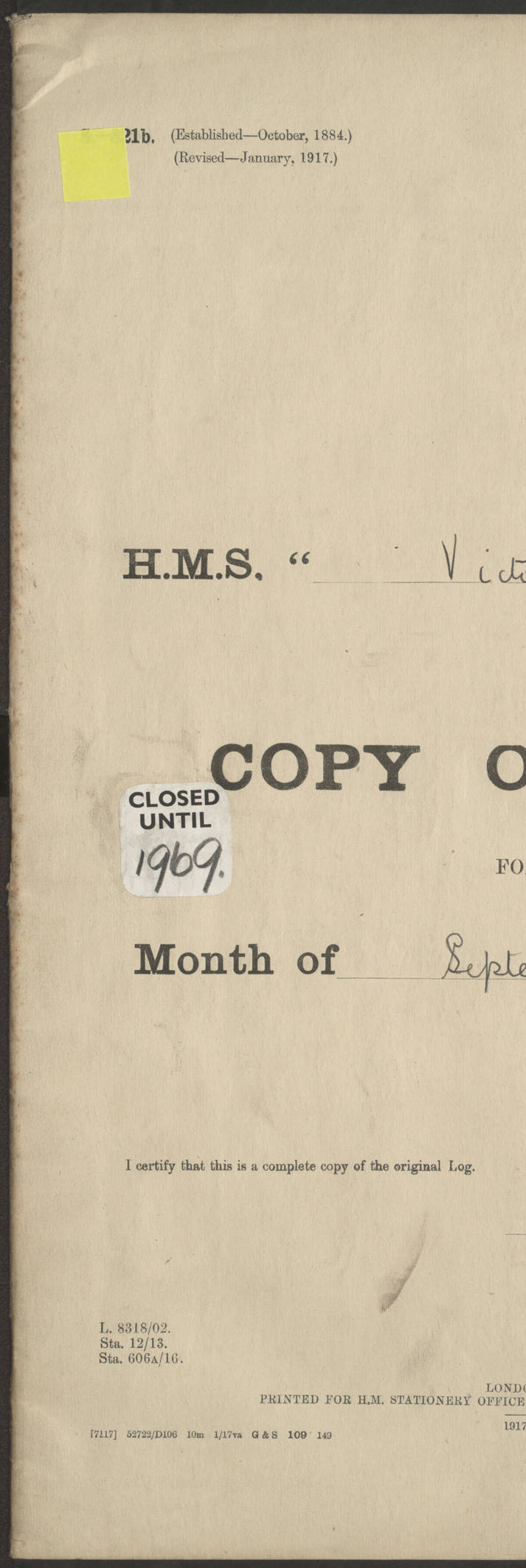 LOGS FOR JANUARY 1917 4caf8c46cadfd341970356ea: (http://oldweather.s3.amazonaws.com/ADM 53-67395/ADM 53-67395-001_0.jpg) [Left hand side of cover of Copy of Log for January 1917] 4caf8c46cadfd341970356eb: (http://oldweather.s3.amazonaws.com/ADM 53-67395/ADM 53-67395-001_1.jpg) [Right hand side of cover, signed by RW Goodacre, Navigating Officer] 4caf8c46cadfd341970356ec: (http://oldweather.s3.amazonaws.com/ADM 53-67395/ADM 53-67395-002_0.jpg) [Blank page] 4caf8c46cadfd341970356ed: (http://oldweather.s3.amazonaws.com/ADM 53-67395/ADM 53-67395-002_1.jpg) [Page not completed but signed FH Walter, Captain, dated 1.2.17] [Note: Captain Frederic Henry Walter RN (18 August 1872 to 29 July 1949) was Captain of HMS Victorian from 2 June 1915 to 27 August 1918.] 4caf8c46cadfd341970356ee: (http://oldweather.s3.amazonaws.com/ADM 53-67395/ADM 53-67395-003_0.jpg) [Details of Barometer and Thermometers as follows:]