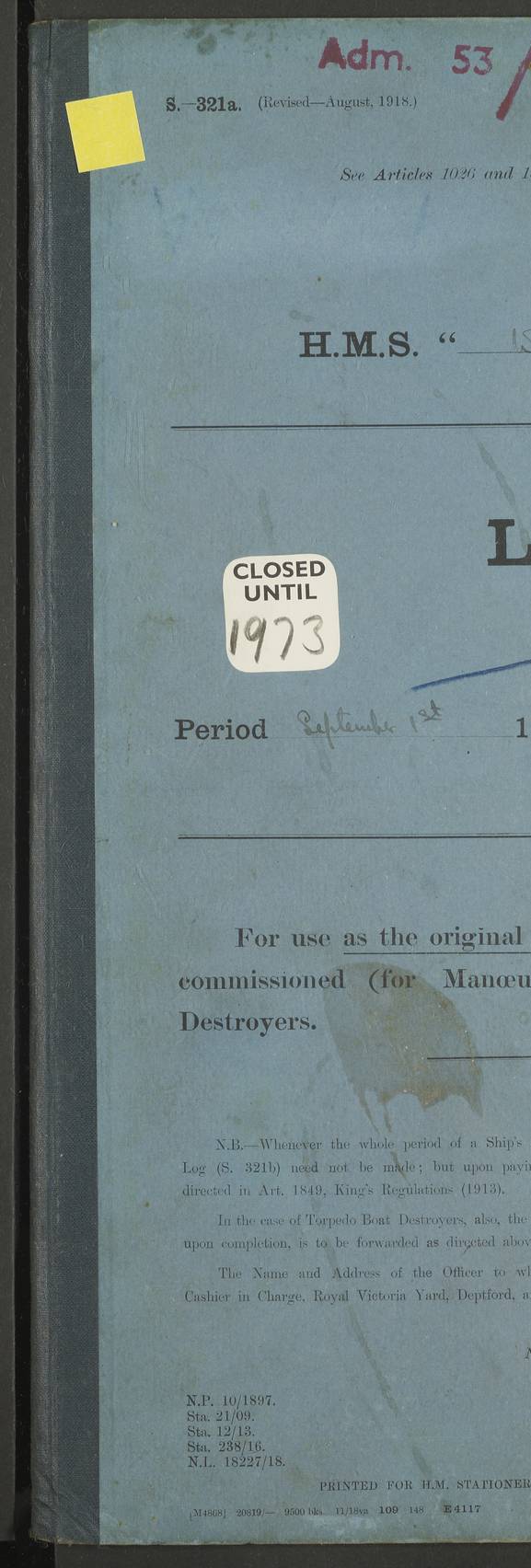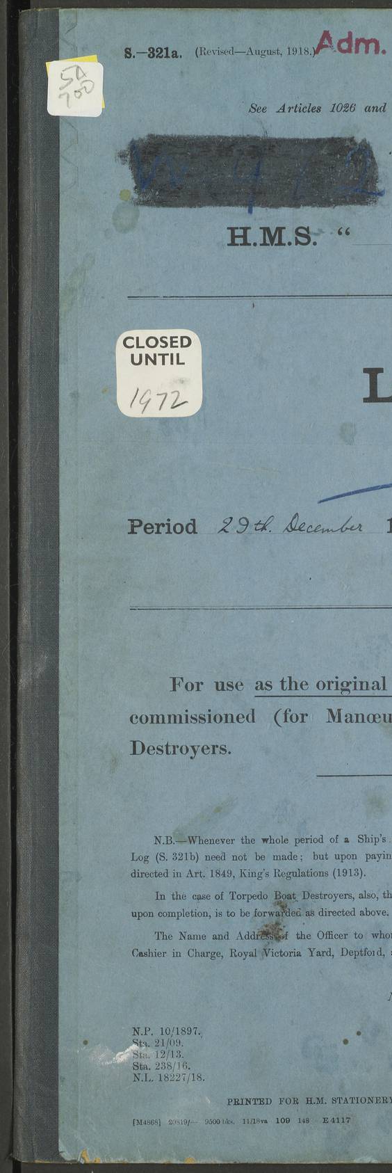 To Deputy Cashier in Charge Deptford [Signed] J P Champion, Commander 5th October 1922 4f73cadaa2fc8ea903000bf2: (https://s3.amazonaws.com:443/oldweather/ADM53-93268/0003_0.jpg)