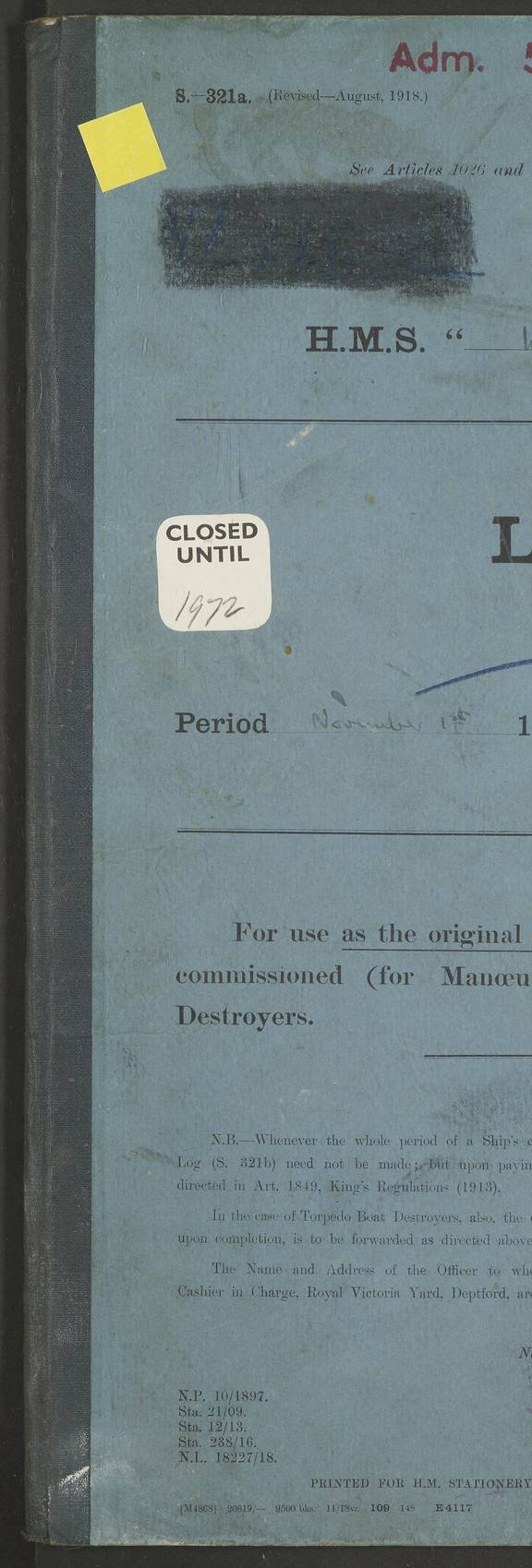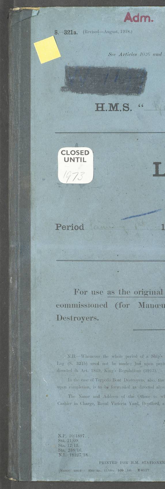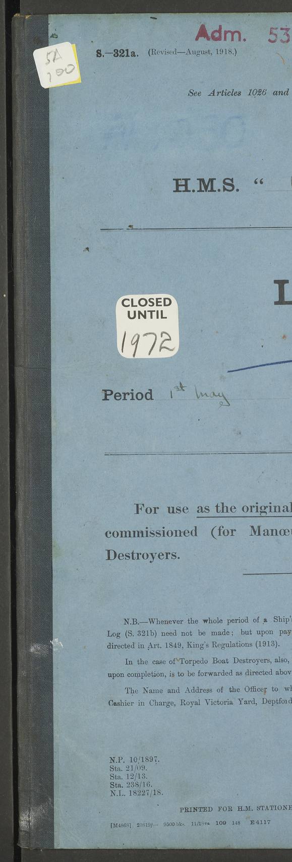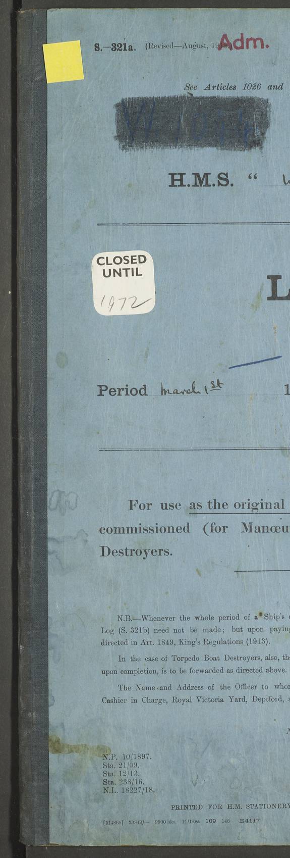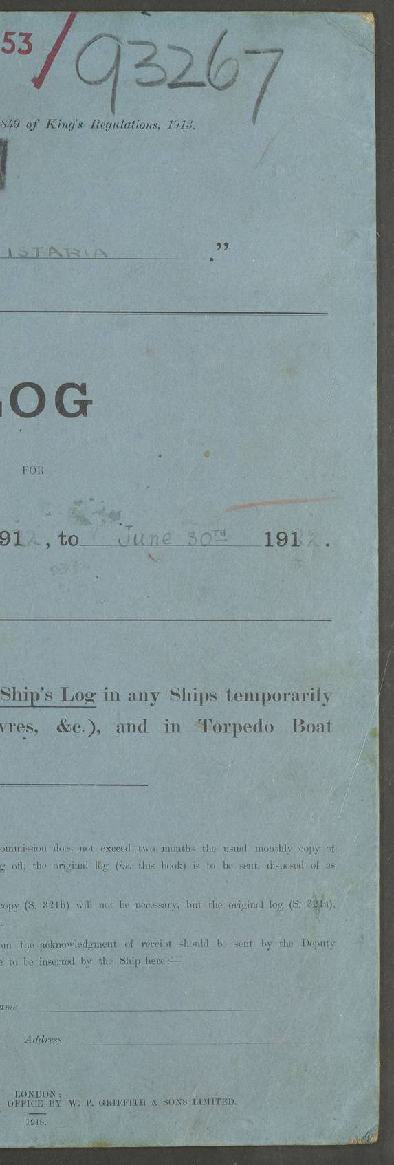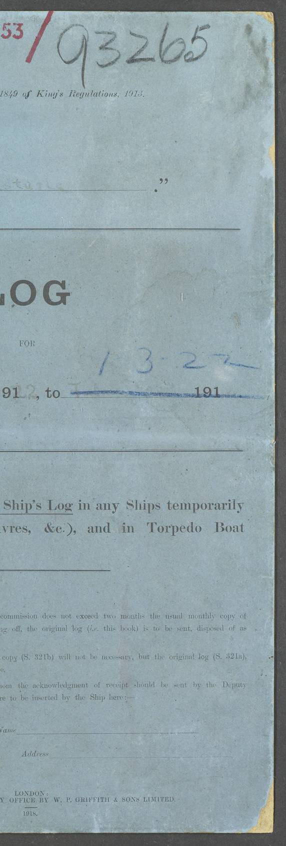 LOG BOOK – JANUARY 1ST TO MARCH 1ST 1922 4f73ca88a2fc8ea903000b16: (https://s3.amazonaws.com:443/oldweather/ADM53-93265/0001_0.jpg) 4f73ca88a2fc8ea903000b17: (https://s3.amazonaws.com:443/oldweather/ADM53-93265/0001_1.jpg) 4f73ca88a2fc8ea903000b18: (https://s3.amazonaws.com:443/oldweather/ADM53-93265/0002_0.jpg) 4f73ca89a2fc8ea903000b19: (https://s3.amazonaws.com:443/oldweather/ADM53-93265/0002_1.jpg) At authorised power with natural draught: - Distance run per hour, miles: 16.376 - Coal expended for all purposes per hour, tons: 2.0 - Distance run per ton of coal, miles: 8.1888 - Date when this information was obtained by actual experiment: 24-3-16 4f73ca89a2fc8ea903000b1a: (https://s3.amazonaws.com:443/oldweather/ADM53-93265/0003_0.jpg)
