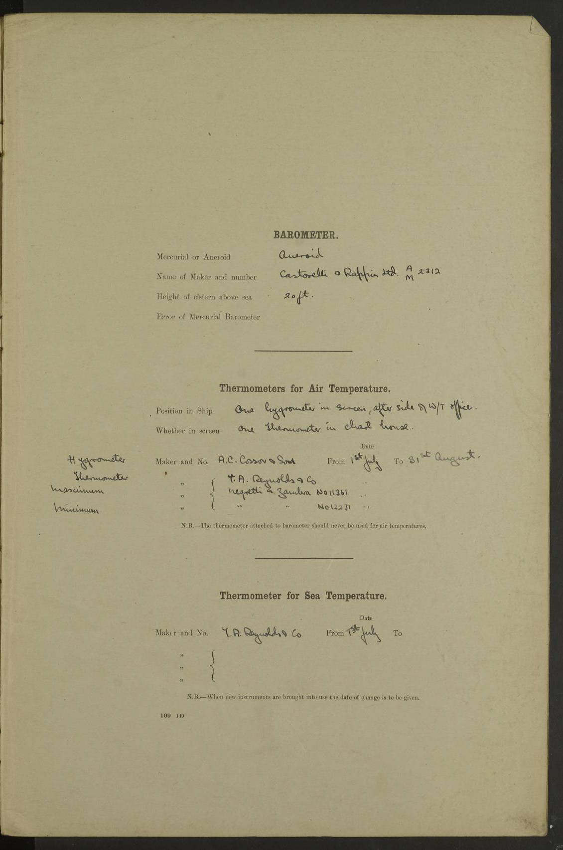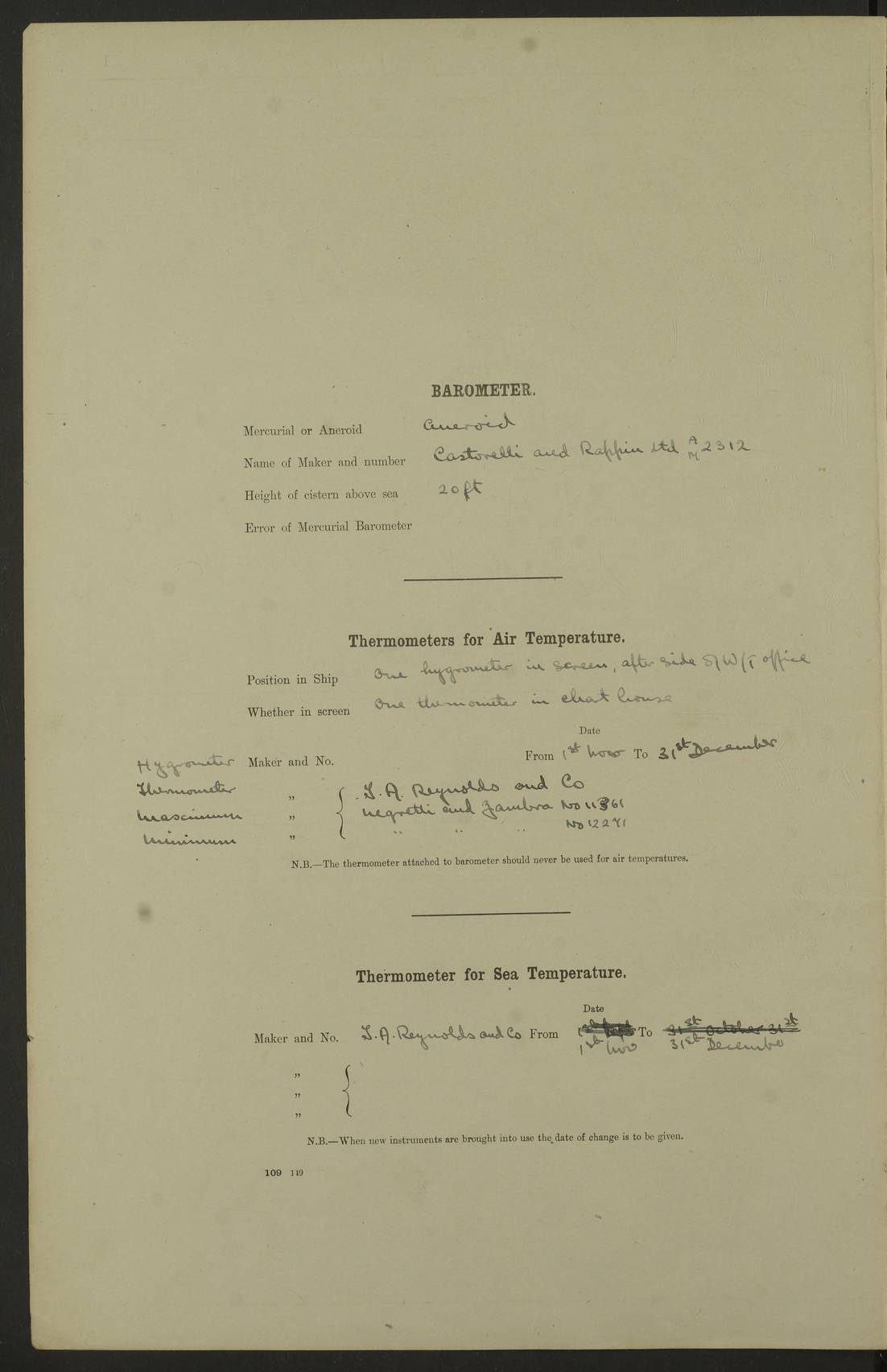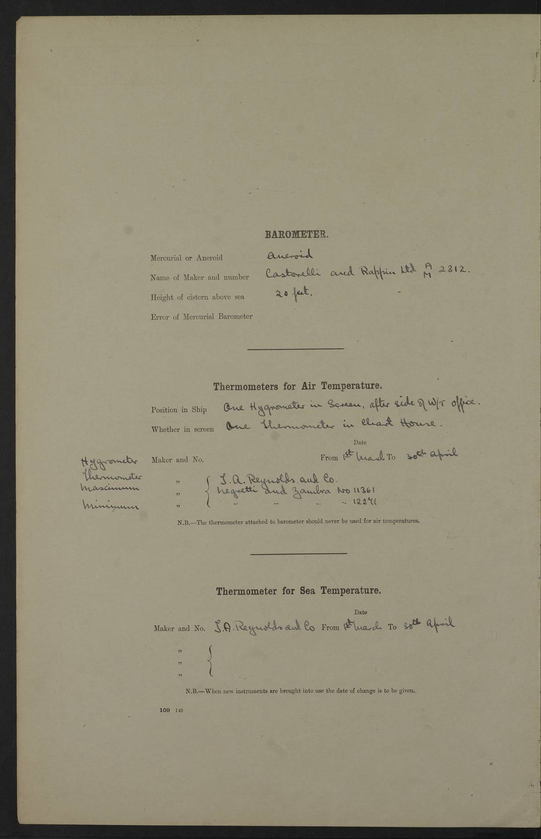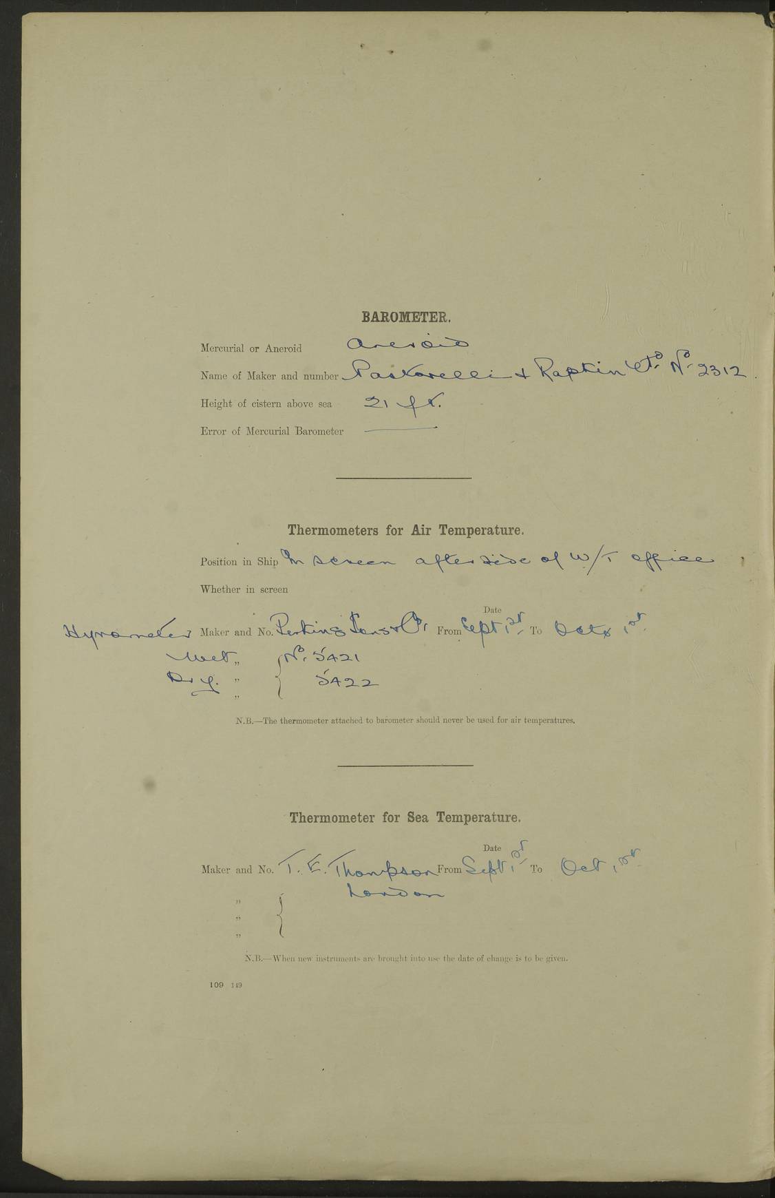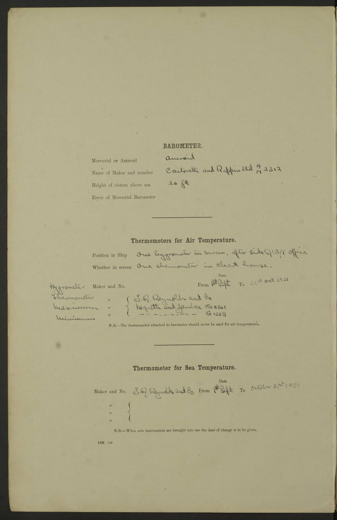 4f73caf5a2fc8ea903000c3b: (https://s3.amazonaws.com:443/oldweather/ADM53-93269/0003_1.jpg) 1 September 1922 At Bermuda Lat 32.32, Long -64.8 5.30am: Hands employed cleaning ship 8.15am: Hands employed ranging cable for survey Sunset 6.30 2.0pm: Hands employed scraping ship's bottom, and cleaning out cable lockers 4f73caf5a2fc8ea903000c3c: (https://s3.amazonaws.com:443/oldweather/ADM53-93269/0004_0.jpg) 2 September 1922 At Bermuda Lat 32.32, Long -64.8 5.30am: Hands employed cleaning ship 8.15am: Hands employed cleaning ship’s side pm: Commissioned Engineer discharged to hospital pm: 2 ratings joined ship from hospital 5.0pm: Exercised fires stations 4f73caf6a2fc8ea903000c3d: (https://s3.amazonaws.com:443/oldweather/ADM53-93269/0004_1.jpg) 3 September 1922 At Bermuda Lat 32.32, Long -64.8 6.0am: Hands employed cleaning ship (usual Sunday Routine) 8.0-8.45am: Hands clean up decks for Divisions 10.15am: Church of England Church party landed 6.0pm: Tested fire arrangements 4f73caf6a2fc8ea903000c3e: (https://s3.amazonaws.com:443/oldweather/ADM53-93269/0005_0.jpg) 4 September 1922 At Bermuda Lat 32.32, Long -64.8 5.30am: Hands employed scraping ship's bottom 8.15am: Hands employed painting ship's bottom 2.0pm: Hands employed as in the forenoon 4f73caf7a2fc8ea903000c3f: (https://s3.amazonaws.com:443/oldweather/ADM53-93269/0005_1.jpg) 5 September 1922 At Bermuda Lat 32.32, Long -64.8 5.30am: Hands employed painting ship's bottom 8.15am: Hands employed painting ship's bottom am: HMS “Valerian” came alongside in the South Basin am: 1 rating discharged to hospital 1.30pm: Hands employed as in forenoon 4f73caf7a2fc8ea903000c40: (https://s3.amazonaws.com:443/oldweather/ADM53-93269/0006_0.jpg) 6 September 1922 At Bermuda Lat 32.32, Long -64.8 5.40am: Hands employed painting ship's bottom am: 1 PO & 6 Hands employed stowing cable after survey 8.15am: Hands employed restowing cable and painting ship's bottom am: Leave to Engine room branch from 13.30-07.00 Port Watch 1 boatswains pipe lost by accident pm: Received 20 tons of boiled water 2.0pm: Hands employed restowing cable and painting ship's bottom 4f73caf7a2fc8ea903000c41: (https://s3.amazonaws.com:443/oldweather/ADM53-93269/0006_1.jpg) 7 September 1922 At Bermuda Lat 32.32, Long -64.8 6.30am: Hands employed cleaning ship 8.15am: Hands preparing for undocking ship 9.30am: Secured alongside by the sheerlegs am: Hands restowed ammunition 3.45pm: Exercised collision stations 4f73caf8a2fc8ea903000c42: (https://s3.amazonaws.com:443/oldweather/ADM53-93269/0007_0.jpg) 8 September 1922 At Bermuda Lat 32.32, Long -64.8 8.15am: Hands employed cleaning ship 9.30am: Divisions. Inspection of the ship by Captain the Hon. A. E. Strutt 10.10am: Hands muster by the ledger 11.0am: Cleared ship for action pm: 6 ratings joined ship from Hospital 1.30pm: Resumed inspection of the ship by Captain the Hon A. E. Strutt 2.45pm: Secured, replace gear [Captain the Honourable Arthur Charles Strutt] 4f73caf8a2fc8ea903000c43: (https://s3.amazonaws.com:443/oldweather/ADM53-93269/0007_1.jpg) 9 September 1922 From Bermuda to Halifax N.S., and at Bermuda Lat 32.32, Long -64.8 8.15am: Hands employed provisioning ship pm: 12 ratings discharged to HMS “Dartmouth” pm: 18 ratings joined ship pm: Received 7 tons of boiler water 2.0pm: Hands employed securing ship for sea 4.0pm: Slipped from Jetty & proceeded out 4.15pm: Stopped in Grassy Bay, and hoisted motor boat 4.30pm: Proceeded at 96 revs. Co as requisite for Ship Channel and Narrows 5.49pm: Fairway buoy abeam. Course East 6.04pm: Mills Breaker buoy abeam, 8 cables 6.19pm: Kitchen Shoals buoy abeam, 1 mile 6.35pm: Streamed log [Mills Breaker buoy coordinates: Lat 32 23.9N, Long 64 36.9W] [Kitchen Shoal beacon coordinates: Lat 32 26.1N, Long 64 37.6W] 4f73caf8a2fc8ea903000c44: (https://s3.amazonaws.com:443/oldweather/ADM53-93269/0008_0.jpg) 10 September 1922 From Bermuda to Halifax Lat 35.06, Long -64.5 9.45am: Divisions & Prayers pm: Usual Sunday Routine 4.05pm: Hauled in, cleaned & streamed patent log 5.0pm: Put clocks on 20 minutes 5.30pm: Exercised sounding party True Bearing and Distance: Chebucto Head 004°½, 566 miles 4f73caf9a2fc8ea903000c45: (https://s3.amazonaws.com:443/oldweather/ADM53-93269/0008_1.jpg) 11 September 1922 From Bermuda to Halifax Lat 38.88, Long -64.3 3.0am: Within strong W/T touch with “Cape Town” 5.25am: Spoke “Cape Town” am: Divisions & Prayers, Exercised action am: Exchanged names with British Steamer “San Valerio”, Eagle Oil Co. Lat 38 35N, Long 63 55W 10.10am: Secure pm: Hands employed painting lower boom gear & waterways & cleaning out 2nd whaler 4.50pm: Exercised sounding party 5.0pm: Put clocks on ½ hour 10.10pm: Stopped engines, helm jammed 10.12pm: Hauled in patent log 10.35pm: Resumed Co & speed; hand wheel connected up. Course below NNE 10.45pm: Streamed patent log True Bearing and Distance: Chebucto Head 005°, 332 miles 4f73caf9a2fc8ea903000c46: (https://s3.amazonaws.com:443/oldweather/ADM53-93269/0009_0.jpg) 12 September 1922 From Bermuda to Halifax Lat 42.85, Long -63.81 am: Steering by hand 9.45am: Ord Seamen & Boys to 4” instruction pm: 1 hand scrubber lost by accident pm: 1 whalers oar lost by accident 5.0pm: Altered course N36E (steering NNE½E). Put clocks on 1/2 hour 8.15pm: Sighted Sambro Lt bearing N20E 8.40pm: Sighted Chebucto Head Lt bearing N18E 9.27pm: Sambro Lt buoy abeam, 2 miles 10.07pm: Sambro Lt abeam 10.10pm: Chebucto Lt abeam 10.20pm: Hauled in Patent log 11.20pm: Mauger Beach Lt abeam 11.52pm: Let go off No 4 wharf with 2½ shackles True Bearing and Distance: Chebucto Head 007, 100 miles 4f73cafaa2fc8ea903000c47: (https://s3.amazonaws.com:443/oldweather/ADM53-93269/0009_1.jpg) 13 September 1922 At Halifax Lat 44.69, Long -63.64 7.0am: Ship wharped alongside No 4 pier 8.0am: Hands prepare for coaling 8.45am: Hands coal ship 9.0am: Clocks put back 1 hour 12.30pm: Hands coal ship pm: 26 tons boiler water received 2.25pm: Finished coaling 4f73cafaa2fc