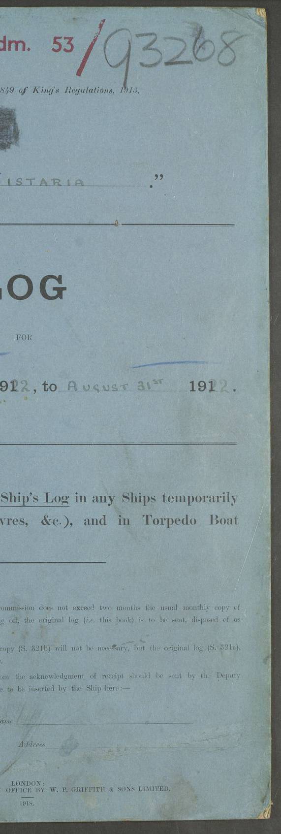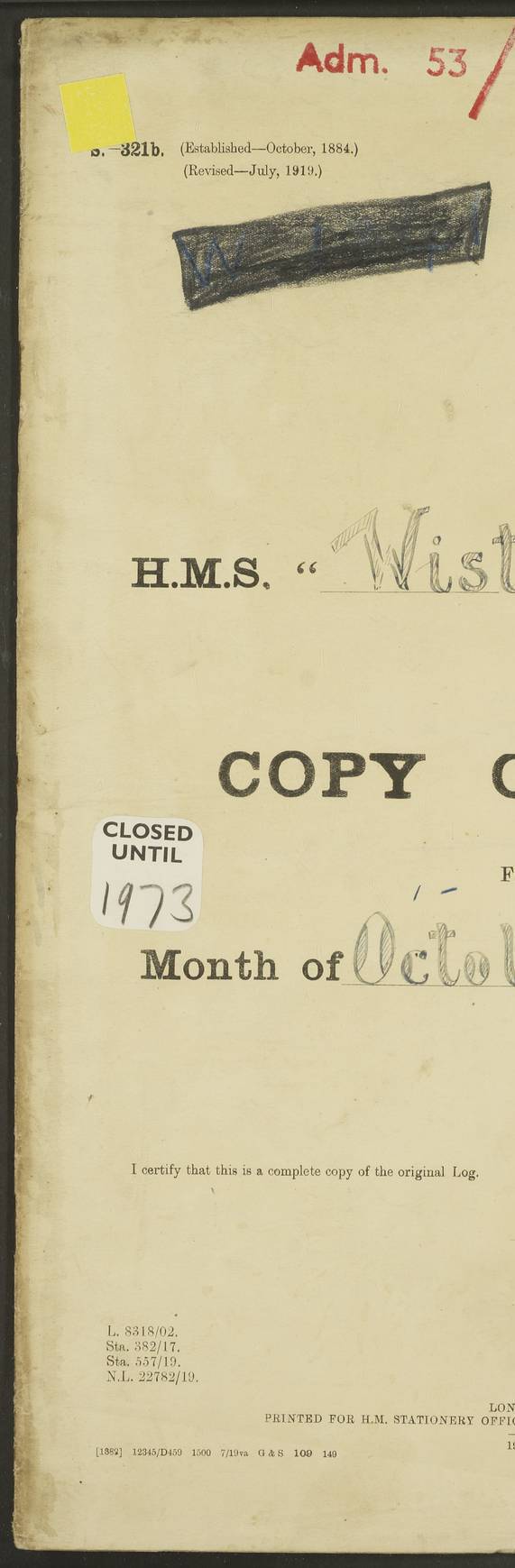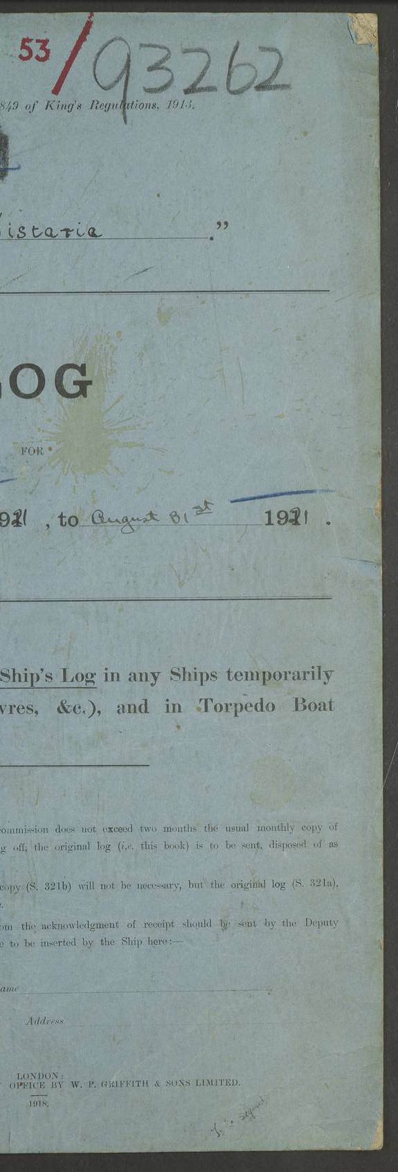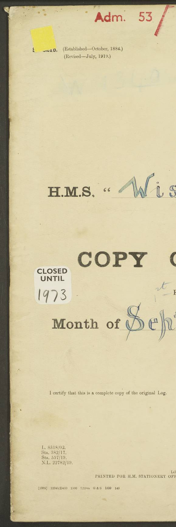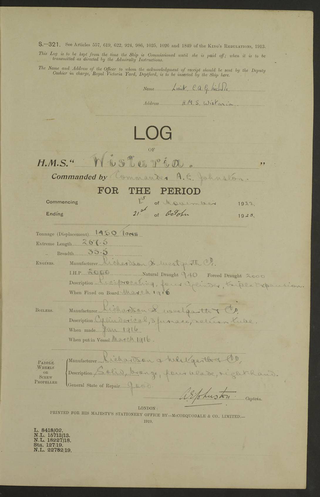 [Signed] J P Champion Commander HMS “Wistaria” 22 May 1922 4f73caa4a2fc8ea903000b62: (https://s3.amazonaws.com:443/oldweather/ADM53-93266/0003_0.jpg)
