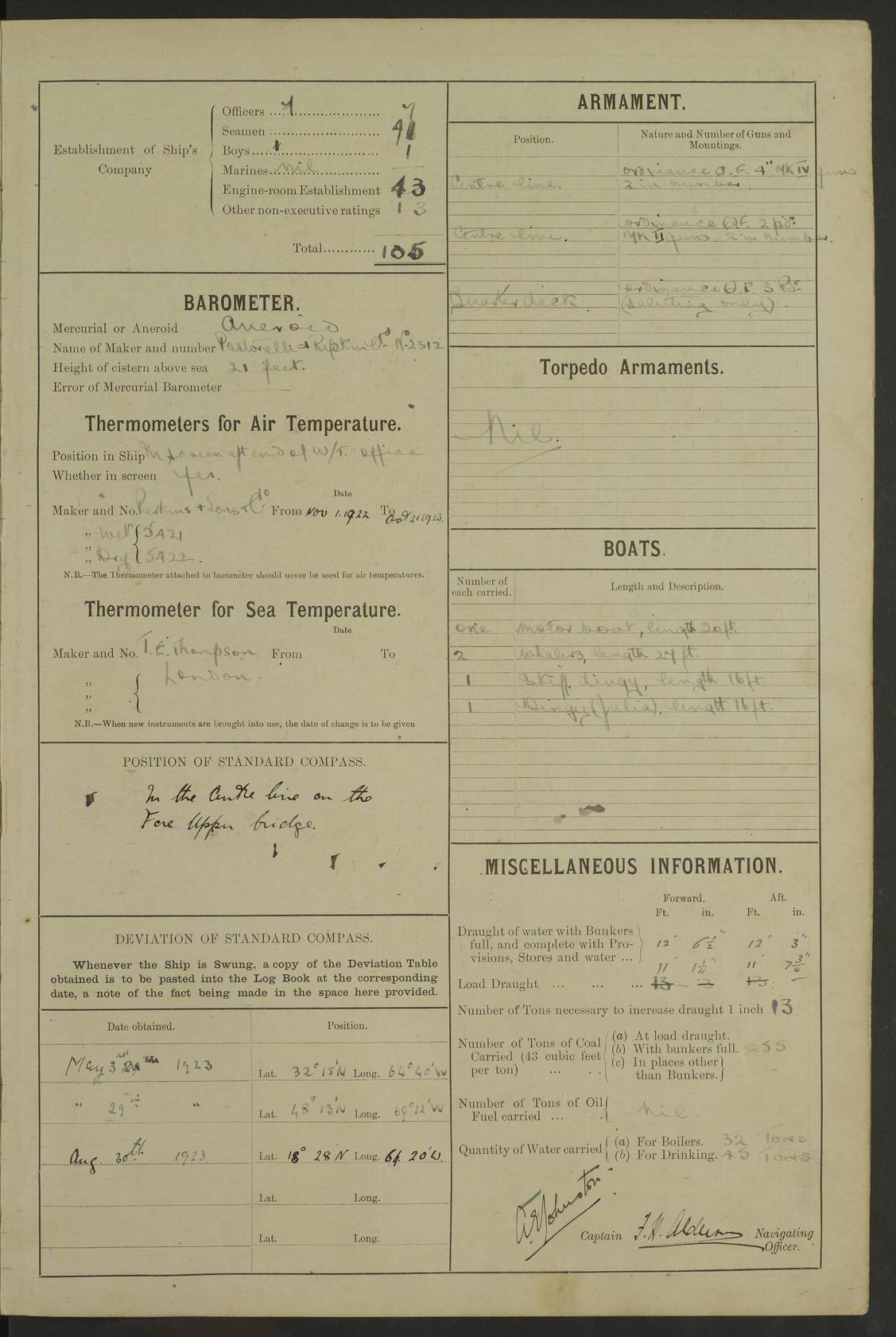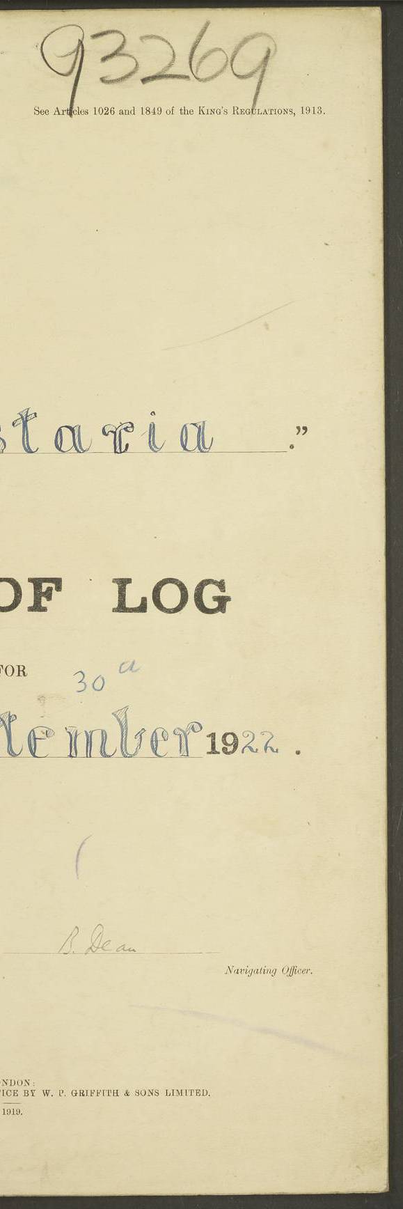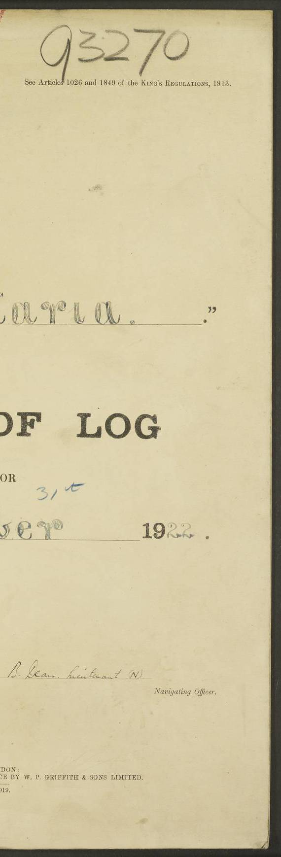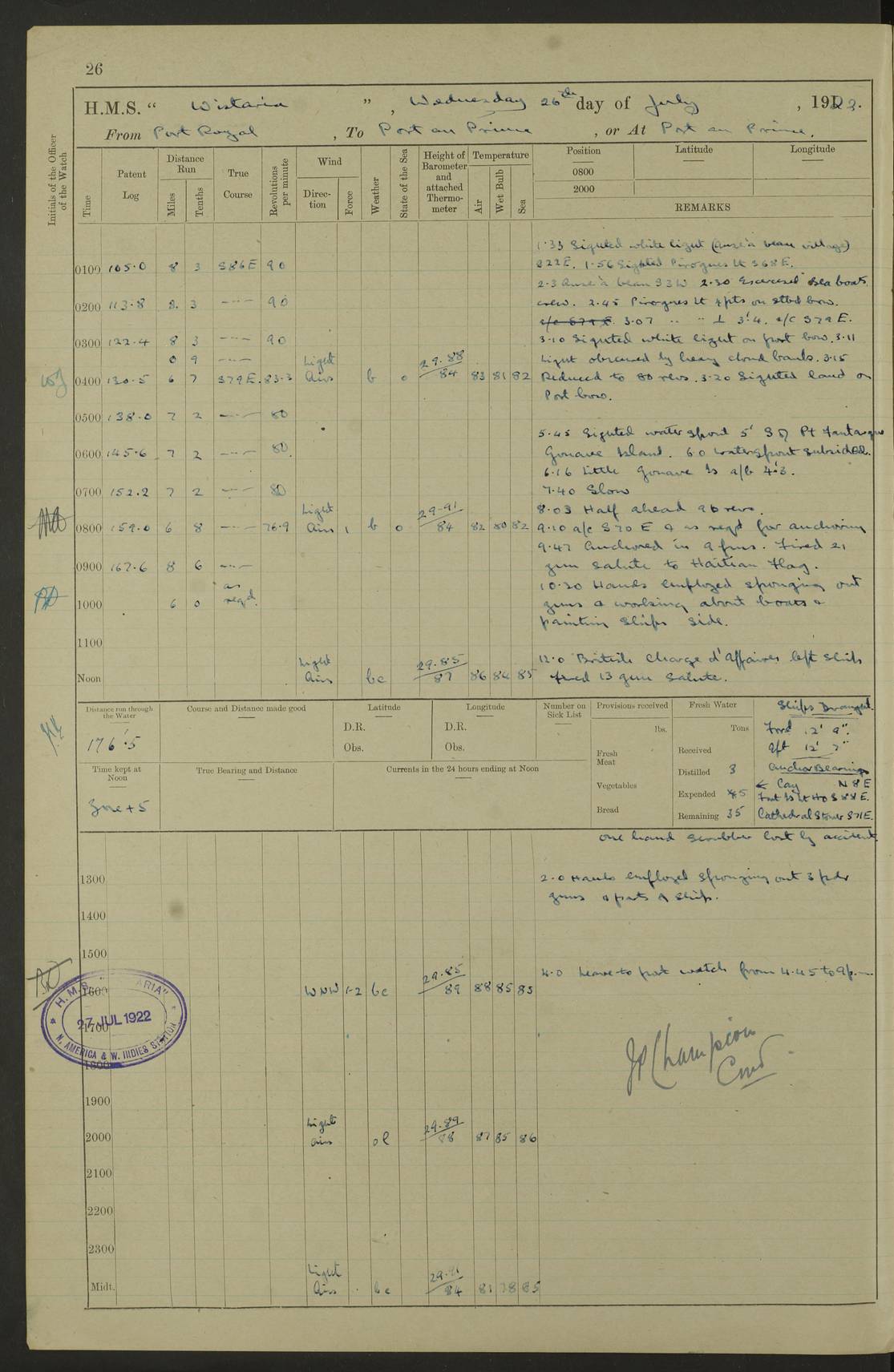 [Signed] J P Champion Commander 17th July 1922 4f73cabfa2fc8ea903000baa: (https://s3.amazonaws.com:443/oldweather/ADM53-93267/0003_0.jpg)