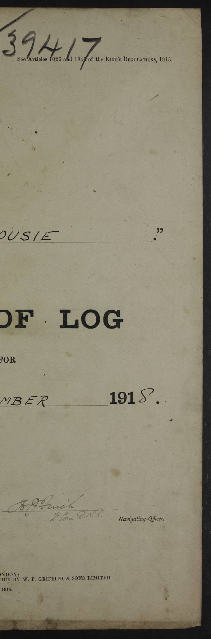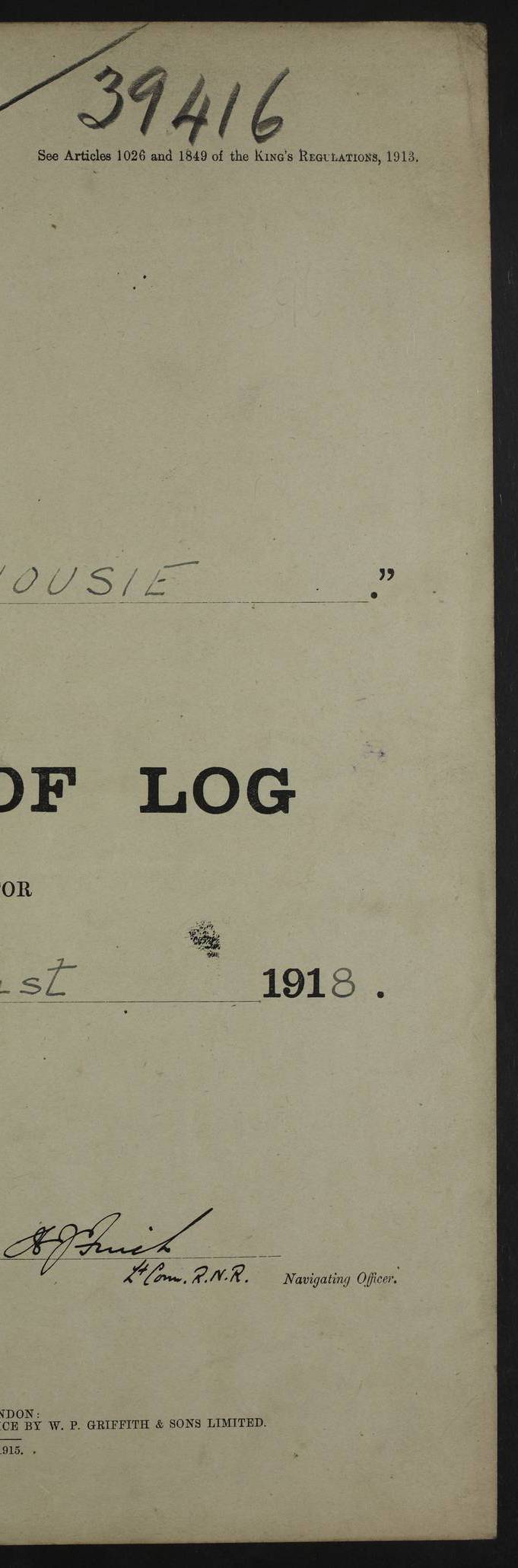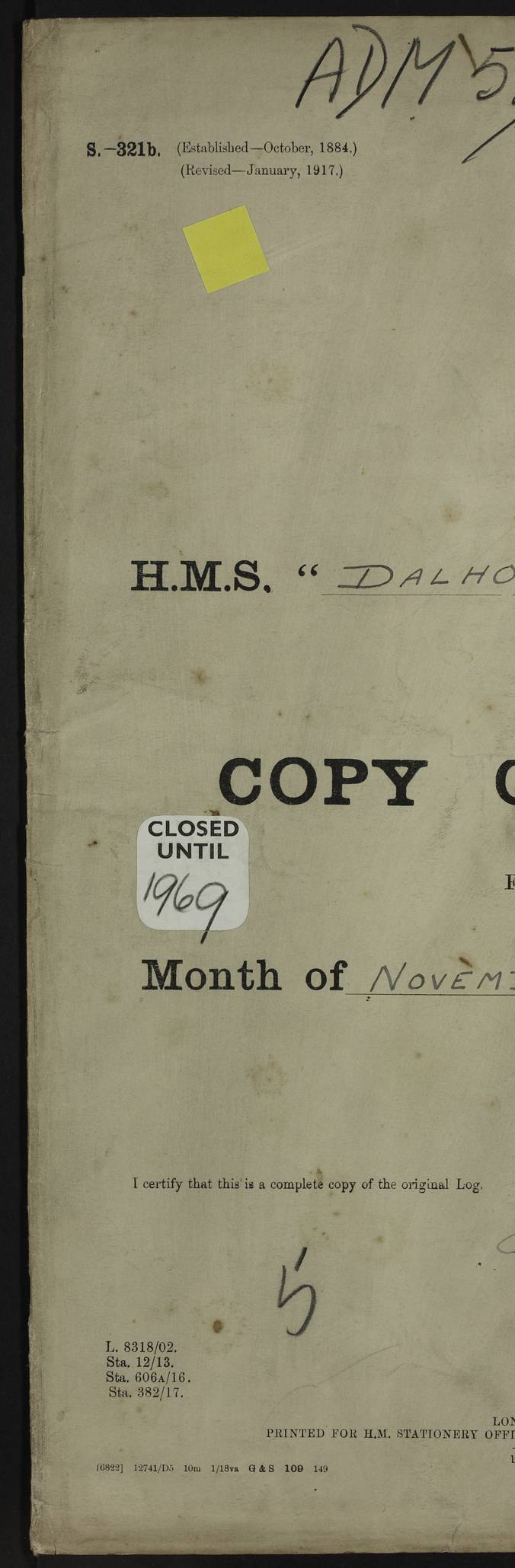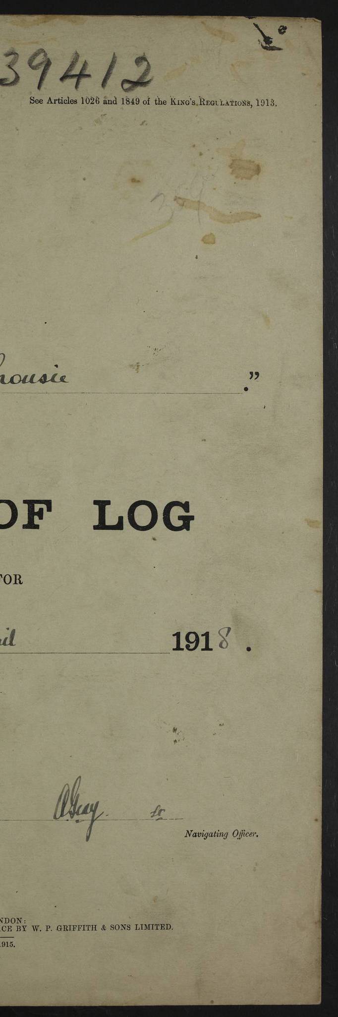 Notes: 1. Latitude/longitude, including for days in port, show representative decimal positions for each day, as calculated by the Old Weather project's analysis program. As such, they differ by varying amounts from the positions recorded, usually at noon, in the log pages. In addition, some latitudes/longitudes have been amended in edited logs for errors in the logs, for errors in identifying locations by the analysis program, or simply for greater accuracy. In all cases, refer to the log-page scans for the positions as originally recorded. Not all log pages contain this information and the ships' positions have therefore often been estimated. 2. Full account of any day is available by clicking on the link above that day. Groups of links refer to log book covers and introductory information; some may be blank. Editor’s notes: Where I have been able to research personnel, a ship, a place name, or other facts, I have placed underlined links in the narrative to help the reader find further information. As Dalhousie interacted with other ships I have tried to link to those ships for further research. I have linked most HMS to Wikipedia: http://en.wikipedia.org/wiki/List_of_ship_names_of_the_Royal_Navy. Some HMS logs are available at Log Book Home page. While many have been edited, some are still awaiting edit. ‘Log reset miles’ refers to the patent log – a rotored/propellered instrument towed behind the ship to measure distance travelled. Its ‘rotations' are frequently mentioned in the ship's logs as a means of determining speed. The patent log would be read and reset at intervals to determine how far the ship had travelled during a period of time. ‘Bower' refers to the anchors carried at the bow of the ship. The term Seedie is listed many times after crewmen’s names. Seedies and Kroomen (also Kroumen or Krumen) were African sailors recruited locally into the Royal Navy in the 19th and early 20th centuries. A more detailed reference may be found at: https://en.wikipedia.org/wiki/Seedies_and_Kroomen Many measurements will be mentioned in the logs such as ‘Cable, Fathom, Shackle, and Mile (Nautical Mile). Data can be found at: Imperial Measures of Length. There are several entries in the logs with the abbreviation S.B.C. My research indicates Signal Books Correct / Seen By Commander / Set Bridge Chronometer. The bridge chronometer would not have been the only chronometer on board but it was the critical piece and was intended to be checked by lunar or solar reading. The chronometer could be checked at noon by sextant sight but since the entries are at various times I have ‘standardised’ on Signal Books Correct unless otherwise noted. Follow the link for a list of all 142 ships met by R.I.M.S. Dalhousie in the period covered by the log-books, August 1916 to December 1918. |